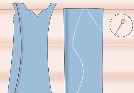 Pin and sew the two pieces together. After you have connected all of your bodice and front pieces, pin them to each other so that the neckline areas are lined up and the right sides are facing each other. Then, sew along the pinned edges and remove the pins as you go.