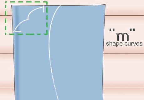 Draw a curve from the top of your bodice piece to the center of the neckline. Next, you will need to create the curve extending from the center mark on your folded fabric to the top corner of your bodice. This curve should resemble the inner part of a lowercase letter “m.” If you find it hard to draw the curve freehand, then you might want to use a curved object, such as a bowl. You can make the curve as pronounced or as subtle as you like.