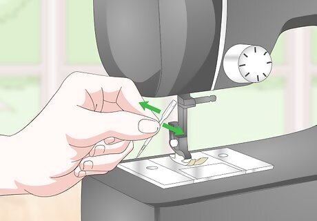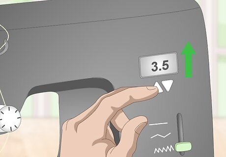 Widen the stitch length to at least 3.5. Having the stitches too close together may stress the fabric and lead to tears. A wider stitch length will help to prevent the needle from damaging your fake leather fabric. Locate the stitch width dial or control button on your sewing machine and adjust the stitch length so that it is on one of the wider settings, 3.5 or higher. Consult your sewing machine’s manual for specific instructions on how to adjust the stitch width.