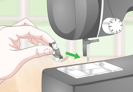 Install a new needle before and after sewing fake leather. The thickness of this fabric will wear down the point of your sewing machine needle more quickly than other fabrics, so it is important to install a new needle before you start a sewing project that uses fake leather and after you finish the project as well. Follow your sewing machine’s instructions for installing a new needle.