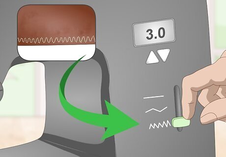 Choose a zigzag stitch for hems. The zigzag stitch is a good option for finishing edges, such as hems on leather fabric. The stitch will cover more area of the fake leather fabric, so it will hold the edge of the fabric more securely. If you prefer the look of the zigzag stitch, use it to sew your hems. Consult your sewing machine for instructions on how to set it to the zigzag stitch.