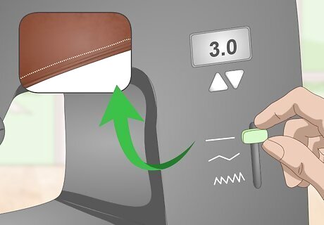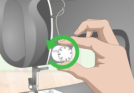 Loosen the tension on your thread to make it easier to sew. Too much tension on your thread can make it difficult to sew through fake leather fabric, and you may also end up breaking your thread. To make it easier to sew the fake leather fabric, adjust the thread tension on your sewing machine by turning the dial at the top of the machine near the area where the thread feeds through. Turn the dial to the left by about 1 quarter to 1 half of a turn to loosen the thread. Test the stitches on a piece of scrap fabric to see if you need to adjust the tension more. If the thread bunches up on the back of the fabric, you have loosened the tension too much.