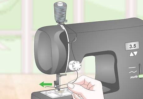 Thread the sewing machine with a heavy-duty thread. To ensure strong stitches in fake leather fabric, make sure to use thread that is thick enough to hold the leather fabric together. You can purchase a thread meant for working thicker materials, such as denim thread or embroidery thread. The color of the thread should also match the fake leather fabric. For example, if the fabric is brown, then choose a brown thread.