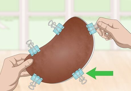Use binder clips to hold the cut fake leather pieces together. After you cut the fake leather into the shapes required for your sewing pattern, use binder clips to connect the pieces as indicated by the pattern. Binder clips will not penetrate the fabric the way that pins will, so you will be less likely to damage the fabric. Place a binder clip about every 2 to 3 inches (5.1 to 7.6 cm) along the edges of the fabric pieces. You will need to remove the binder clips before you sew each area of the fake leather.