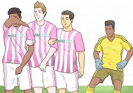 Crowd the keeper. From your perspective, this is a straightforward cross to the box. Most of the maneuvering here is done by your teammates, who attempt to crowd around the keeper and get in his way. If your teammates can work together and give each other space once contact is made, you have a good chance of either getting a shot on goal or getting a penalty from the crowd of defenders.