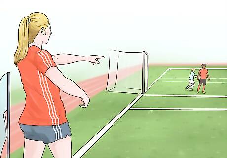 Confirm the opposing players are at a legal distance. As with any direct free kick, the opposing team must stay at least 10 yards (9.15 meters) away from the person taking the corner. If you're playing on a smaller field, you can use your best judgement.