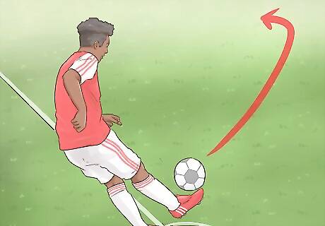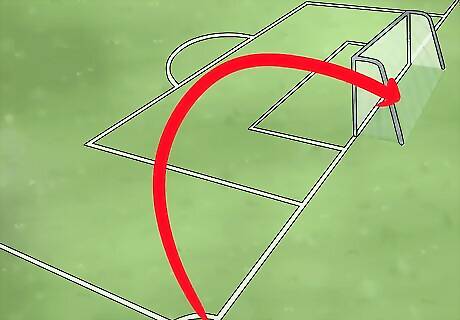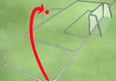 Make a run to the edge of the box. Signal the play to your team so an excellent distance shooter can position himself outside the penalty box. Kick the ball to the edge of the penalty box while your teammate runs forward and makes a shot on goal at long range. You must be a skilled and powerful crosser to get a goal from this corner. Discuss it in advance, and make sure the shooter knows to act defensively when appropriate. Losing possession from this position could be disastrous.