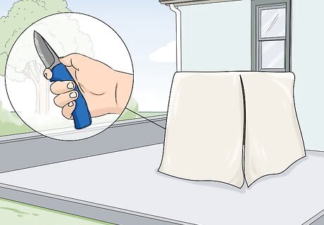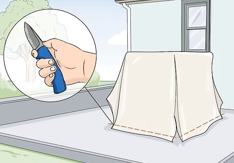 Trim any excess material with your knife. If there is excess plastic hanging on the ground or there are any corners of shrink wrap that you don’t need, cut them off using your utility knife. To cut the shrink wrap, stick your blade into the material and drag it through the material. You only need enough plastic to wrap tightly around the furniture, so trim any portions off that you know you won’t need.