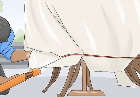 Drape a blanket or moving pad over the furniture to protect it. If you want to secure your outdoor furniture and protect it from bumping against other items, gently drape a large moving pad, blanket, or towel over your furniture. In the event that another box or furniture item rubs against your furniture, the cloth will keep your furniture from being scratched or harmed.
