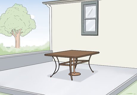 Clear the area outside where you’re going to work. Your patio or yard are excellent places to work. You can do this on a porch if you have enough space, but you need room to walk around your furniture and apply your shrink wrap. Clear an area to work and give yourself at least 10–15 feet (3.0–4.6 m) to move. Remove any outdoor rugs, flower pots, or garden fixtures that may get in the way. If you’re using a roll of shrink film to package your furniture for moving, you don’t need to use a heat gun. That means you can do this inside if you prefer. You still need plenty of room to work, though. If you are working outside and you’re using industrial shrink wrap, don’t do this on a windy day. It will be too difficult to heat the wrap without risking a fire.