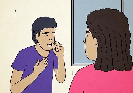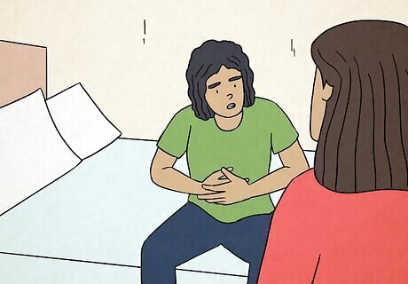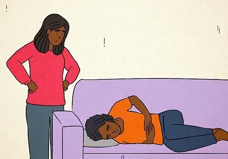 Wake up "sick". Get up a little later than you should. Tell your parents you’re not feeling so great. Walk around slowly, like your muscles are achy, and don’t fix your messy, sleepyhead hair. Don't eat too much breakfast. Sick people often lose their appetites, so this will help with the illusion. If you’re faking cold/flu symptoms, cough and sneeze and say you’re feeling dizzy. If you’ve been faking stomach symptoms, rub your stomach and moan that it hurts.