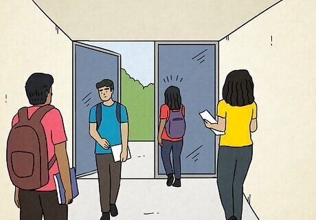 Leave school at the right moment. If you want to leave the premises for the day, you need to slip away when you are least likely to be noticed. This is best done usually when there are lots of people around. Leaving at the very beginning of the day will probably get you noticed, since most kids are going into the school and not away from it. Go to your first class so you can at least be seen, then slip away in between classes. You can also do this between afternoon classes, or around lunchtime.