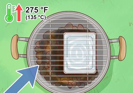 Fill the other side of your grill with hot charcoal. Pour the charcoals on the outside of the water tray on the bottom of your grill. Let the grill heat to a temperature of around 275 °F (135 °C) before you start smoking your sausages. Keeping the charcoal on one side creates a cold area on your grill and a hot area over the coals.