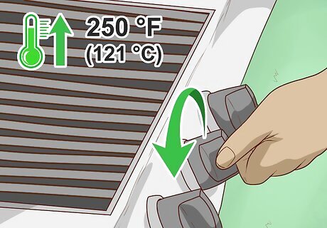 Leave the damper vent open one-quarter of the way. Locate the small metal dial near the top of your smoker. Turn the dial to open the damper so some of the smoke and heat can escape. Don’t open it more than 25% or else you’ll lose most of your smoke. Opening the damper vents also provides fresh air to the flames inside of a charcoal smoker so they stay lit.