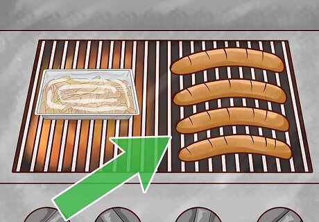 Light 1 burner on your grill and let it heat to 250 °F (121 °C). Turn on one of your burners on either side of your grill and close the lid. Use the built-in thermometer on the grill or use a laser thermometer to check the temperature. Leave one side of your grill off so your sausages will cook from indirect heat.