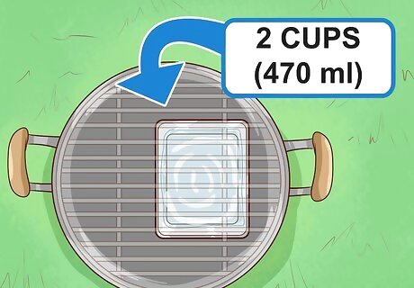 Place a tray with 2 c (470 ml) of warm water on the bottom of your grill. Fill a disposable aluminum baking tray with warm water. Set it on one side on the bottom of your grill so you have enough room to add charcoal. The water helps keep your sausages moist while they’re cooking. Experiment with different liquids, such as beer, wine, or apple juice, to add different flavors to your meat. Make sure the water is at least room temperature so it doesn’t cool down your hot coals too much.