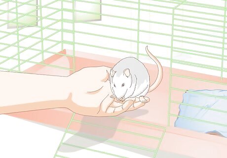 Minimize her stress. Rats can be stressed by new environments. Minimizing her stress the first few days you have her can make it easier to socialize her. The following can help your rat get used to her environment: Preparing her nesting box before she arrives Using the type of food and bedding she’s used to before slowly introducing new products Allowing her to settle by not handling her.
