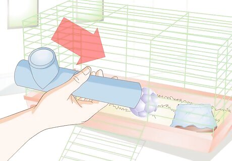 Maintain the cage’s cleanliness. It’s important to your rat’s well being to keep her cage clean. Clean the cage every day and do a complete cleaning once a week. Take out any soiled material, dropping, and uneaten food every day. Clean and refill the water bottle every day. Replace dirty bedding and scrub down the cage with soapy water once a week.