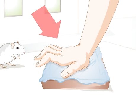 Pick up your rat. If your rat appears comfortable with you from giving her treats, try picking her up. Be aware that rats are very active and may not want to be held or only want held when they’re sleepy. Allow your rat to come out of her cage on her own accord. Don’t invade her space by putting your hand in the cage. Place one hand under the bottom of your rat and the other under over her back to provide her adequate support. Use a small towel to pick her up if she nibbles or bites because rats are less likely to bite a towel. Avoid using gloves.