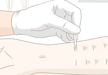 Take an allergy skin prick test. If your doctor recommends this test, they will prick your skin with small needles containing various allergens. If you show an allergic reaction to any of the prick points, then that will let your doctor know that you are sensitive to that particular allergen. This is helpful because it will let you know that you need to avoid pollen, for example, while you might be able to tolerate other kinds of potential allergens. You can also ask for a patch test if you don’t like the prospect of getting pricked with needles but you still want to test for allergies.