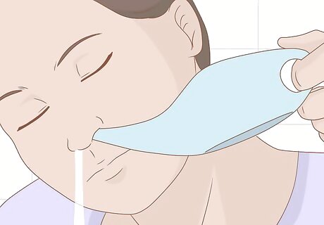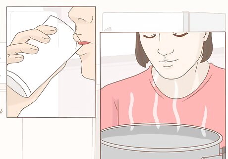Stay hydrated. Drinking water helps lubricate mucous membranes and inhaling steam helps hydrate dry nasal passages and relieve congestion. Try inhaling the steam from a hot shower or from a pot of hot water. Be careful to avoid burning yourself with the steam. If you opt to use a pot of hot water, drape a towel over your head to trap the steam. This enables you to get the benefit of the steam while keeping your face far enough away from the heat source to avoid a steam burn.