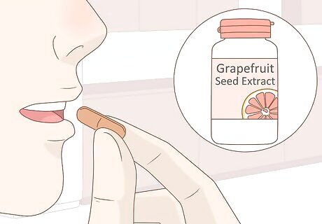 Try grapefruit seed extract supplements. If you think your sinus problems might be the result of a sinus infection, then you might benefit from taking grapefruit seed extract supplements. There is no scientific evidence that this method works, but some believe grapefruit seed extract has powerful antibiotic properties, and its high vitamin C content may help fight infection. Sinus infections need to be diagnosed by a doctor. Classic symptoms include a thick/white discharge, nasal congestion, tooth discomfort, and facial pain or pressure that is made worse when the person leans forward or someone taps on his sinuses. Be aware that both viruses and bacteria can cause sinusitis. Bacterial infections need to be treated with antibiotics and viruses do not respond to treatment. There is no good way to differentiate between the two, so try waiting a few days to see if the infection improves on its own or with home remedies. If not, see a doctor for treatment.