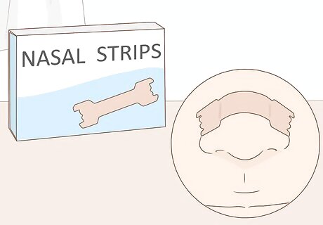 Try nasal strips. Nasal strips are sticky cloth strips that go over the bridge of the nose and physically hold nasal passages open to relieve stuffy noses. These are available in any drugstore or convenience store. They typically come in different sizes, so choose the size that best fits your nose.