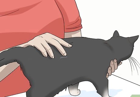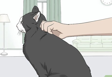 Massage the back of the cat's neck. Run your thumb or fingers from the top of the cat's head to the base of its neck gently. Gently massage the back of the neck with your thumb and fingers. Tug very gently on the loose skin on the sides of the cat's neck.