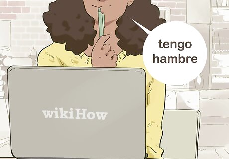 Speak to yourself in Spanish. Chances are, you speak to yourself a lot in your head. Some of these phrases you might repeat a lot, like, “I’m really hungry,” or “Just one more hour until school’s out.” Instead of saying these things to yourself in English all the time, say them in Spanish. This might feel silly, but it’s a great way to get a few lines of Spanish really well ingrained in your brain, so you can rattle them off quickly. This, in turn, helps you speak Spanish more quickly in general.