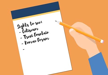 Plan ahead and set realistic goals. If you have only a short time to spend at a new travel destination, you should plan it very carefully so you make the most out of your time and money. Before you arrive, sit down and research the best places to go. Determine what interests you most; perhaps you’re passionate about cuisines and want to explore the Italian dishes, or you might be into art and are excited about the art scene in Rome. Remember that you’ll have only three days, so if you plan 20 different activities for this trip, it’s unlikely to work out—even if it does, you might be too exhausted to enjoy your vacation.
