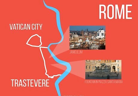 Take a trip to Trastevere. One of the hip neighborhoods of Rome, Trastevere is located across the Tiber river, and holds a variety of colorful stores, cafes, and bars. If you enjoy getting a sense of architecture and the neighborhood’s residents, try strolling around the streets surrounded by plants and old and cultured buildings. Step inside Basilica di Santa Maria for a spiritual break or buy souvenirs at local shops.