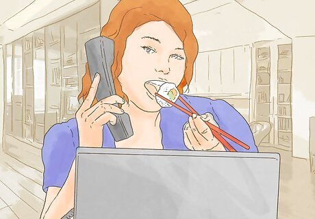 Notice if you're working through meals. A workaholic may read or do work during meals. This might include doing work during your lunch break while at your workplace or taking materials home and working during dinner. You might expect to work through meals or feel agitated or bored if you eat a meal without work in front of you. Perhaps you count on having work with you through meals and often turn down invitations to meet for lunch or dinner due to work.