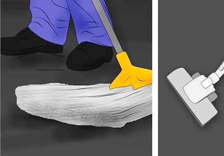 Clean the concrete. Sweep the area or use a shop vacuum to remove any loose particles. Then use the mop to apply a cleaning product that is especially formulated for use with concrete. Most brands of concrete cleaners will apply easily with a mop or a soft brush. Allow the concrete to dry before proceeding.