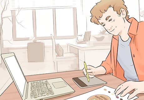 Work from home if you want to save on startup costs. You can definitely run a small graphic design business from your home office, but take the time and spend the money needed to make sure the home office suits your needs. The workspace should be roomy, convenient, organized, and quiet—basically, a place where you know you can do great work! If you’ll be interacting with clients in your home office, you’ll have to make sure it creates the right impression on them as well. Alternatively, you may have to hold your meetings at the local coffee shop.