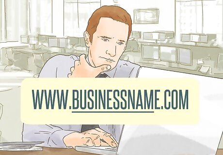Come up with a domain name for your business. It’s best to get a domain name that has the “.com” suffix, as that is the most common. This is one area where you want to blend in. Get your domain name as close to the business’ name as possible, and if you can't get something that’s very close, come up with a new business name. It's very important for your web address to be memorable and easily associated with your business. Once you've come up with a name you're happy with, register it with a registrar such as godaddy.com, wix.com, or one of the dozens of others. You’ll want to price this out, but it shouldn’t cost much at all. Registering the name alone can be purchased for as little as $8.