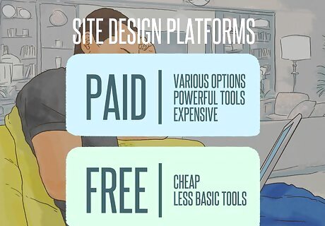 Decide whether you want to use a paid software platform to build your online store. There are dozens of professional software platforms that are available to help you build an online store from top to bottom. Consider investing in one so that you have a site that looks and functions professionally. Paid platforms are often expensive, but costs are wide ranging and come with a variety of options, so it’s important to shop around. No matter which software you choose to use, there are more upfront costs if you go the software route than if you tried to build the store from scratch by yourself. However, it’s probably cheaper and easier in the long run. Unless your store is very simple, or you are a very savvy coder, you’re going to have to expand functionality at some point, which will involve buying software or hiring a third-party.