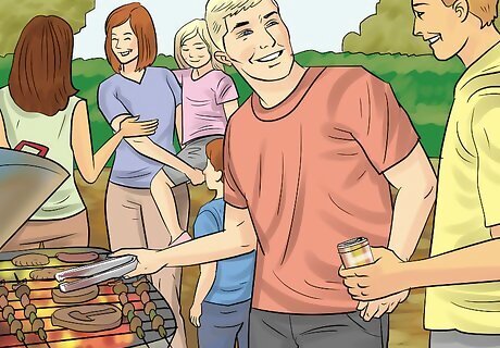 Plan shared events in kid-friendly venues. It can seem like adult- and kid-friendly zones are mutually exclusive; families with kids go to parks, bowling alleys, and pizza restaurants, while child-free adults go to bars, clubs, fancy restaurants, and nice house parties. If you think of it this way, socializing with your child-free friends can seem almost impossible. But, if you find venues and events which cater to both age groups, you can seamlessly combine family and friend activities. For example, barbecues, camping, and sporting events are great activities equally comfortable for kids, parents, and people without kids.