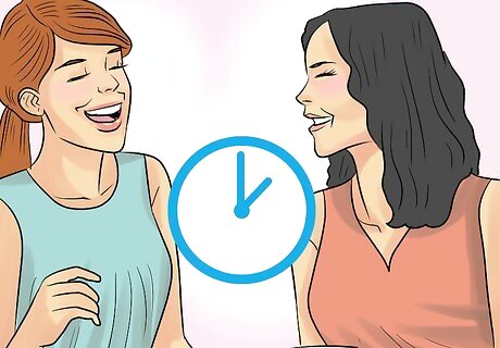 Make plans even if you might have to break them. Some parents find themselves drifting apart from child-free friends because they they think their hectic family schedules won't permit a meet-up. Rather than risking the need to flake out on a friend, they don’t make any plans at all. If you do this, though, you guarantee you’ll miss out on friend time, whereas taking the chance can occasionally pan out. If you’re worried that your friend will feel miffed or upset if you have to cancel, talk to them! Chances are, your friend is already more than aware of your demanding schedule, but if you don’t think they’ll understand, be clear about your scheduling issues ahead of time and warn them that you might have to cancel.