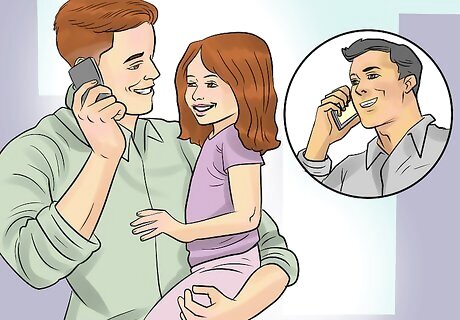 Call, email, or text your friend when you can’t meet in person. The daily demands and logistics of parenthood can mean that you rarely get to see your non-parent friends. This doesn’t mean you have to lose all contact, though. Even a short text or an email of a funny YouTube video can show your friend you’re thinking of them and haven’t forgotten them in the fog of family life. Texting and emails can be great ways to stay in frequent communication, but don’t underestimate the power of a good, old-fashioned phone call. Next time you’re waiting in line at the market or doing the laundry, ring up your friend for a ten-minute chat. Catching up on the phone when you’re stuck on a long car ride is great, too.