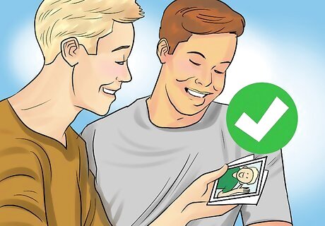 Select special pictures of your children. Every parent loves to photograph their child, and there’s no reason you shouldn’t take as many photos as your heart desires. Though your parents and in-laws are probably eager to see every one of them, your friends could probably live with just a smattering. Pick out a few next time you meet up and flip through them for your friend, but don’t spend all your together-time on family albums. Conversely, ask to see pictures of your friend’s life! Even if they don’t have kids, their phones are probably chock-full of pictures of siblings, nieces, nephews, parents, pets, travel, friends, and adventures which they’d love to show you.