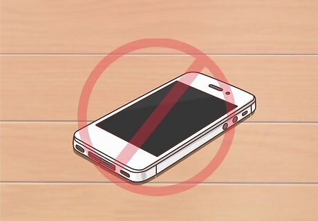 Turn all electronics off. Computers, TV, video games, and cell phones can distract you easily and you probably cannot focus Make sure you turn them off completely and put them away where you cannot see them, unless you are researching or doing something related to your task. Make sure you turn them off completely and put them away where you cannot see them.
