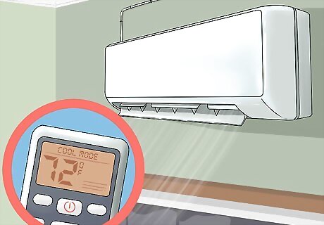 Make sure your room is the right temperature. The ideal temperature to keep you alert is around 75 °F (24 °C). People tend to sleep better in the cold, so a temperature of around 65 °F (18 °C) degrees may make you tired. If you switch off the air conditioning, this should put your room around 75 °F (24 °C) unless you live in a warm area. If it's hot outside, try setting your air conditioning to 75 °F (24 °C) to keep the room at an adequate temperature to stay alert.