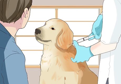 Bring your dog in for vaccinations. Take your dog to its veterinarian every year for an annual exam that also includes updating its vaccinations. From year to year the vaccinations your dog receives may vary, as certain vaccinations are only given every few years. If you switch veterinarians, your new vet should request your dog's veterinary records from its old vet before the appointment. This will allow your new vet to have all the information they need to keep your dog's vaccinations up to date. If you are late on getting your dog vaccinated you should still do it when you remember. Tell your veterinarian that your dog is behind in its vaccinations but that you would like to get it up to date.