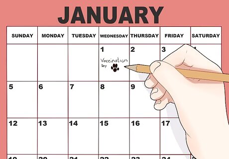 Make an annual veterinary appointment ahead of time. When your dog gets its vaccinations you should make an appointment for the next round, even though it is a year or more away. Making the appointment will help to assure that you don't forget to get your dog re-vaccinated. Some veterinary offices will not want to make appointments too far in advance. If this is the case with your veterinarian, then you will need to keep track of when to call and make an appointment. Put a reminder in your calendar that you need to call and make the appointment.