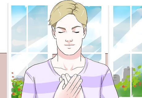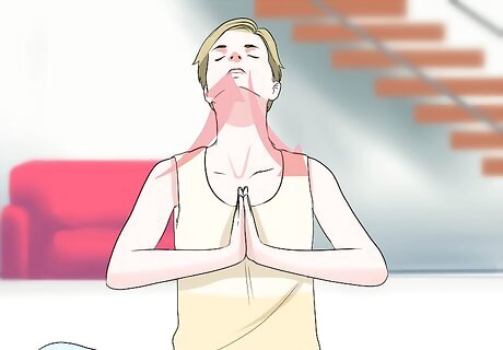 Practice deep-breathing to reduce anxiety. Anxiety influences and increases negative self-talk. The more anxious you are, the more critical you may be about yourself. One of the best ways to stay calm is to use relaxation or deep-breathing techniques. Sit in a comfortable position with your eyes closed. Breathe slowly and deeply in through your nose and out through your mouth. Focus solely on your breathing and how it feels throughout your body, especially the movement of your diaphragm/stomach in and out as you breathe. Do this for a few minutes or until you feel more relaxed.