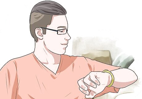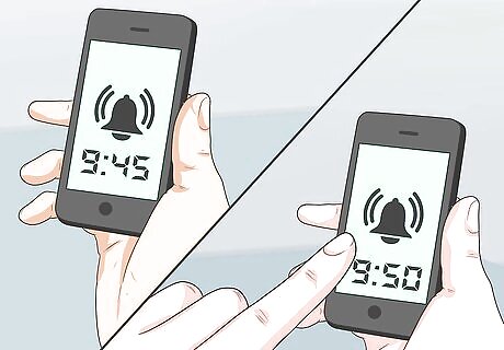 Set two alarms. Set one alarm that lets you know it's time to drop what you're doing, and a second alarm that means you need to walking out the door. Obey the alarms! As soon as the first alarm goes off, stop what you're doing. If it's something you'll be coming back to, like a project for work, make a note to remind yourself where you left off. Grab everything you need, and make sure you know how to get where you're going. Aim to be out the door and on your way before the second alarm rings. This will only work if you take the alarms seriously, so make sure you react as soon as you hear them.
