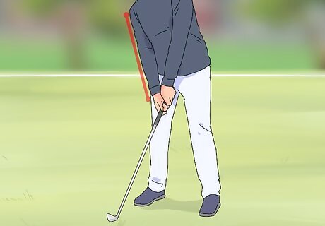 Keep your rear arm straight for as long as possible. Pay attention to the point in your windup where the elbow of your rear arm starts to bend and halt the movement there, then reverse the movement to begin your swing. Bending your arms moves the head of your club farther away from the ball. As long as your arms are straight, you can be certain that you'll contact the ball in the same spot that you lined up during your practice swings. Stretching the muscles of your arms can help you increase the range of motion on your swing while your support arm is perfectly straight. If you’re a right-handed golfer, your left arm will be your rear arm. If you’re left-handed, this position will be reversed.