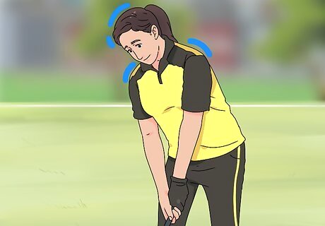 Rely on technique to drive the ball rather than strength. In golf, physics is what gets the ball to the cup, not muscle. Simply trying to hit the ball as hard as you can will cause you to tense up, bend your elbows, and commit all sorts of other errors that can interfere with your swing and lead to a disappointing topper. It’s far more effective to ensure that you’re performing each step of your swing in sequence with proper form. Before you step up to the tee, run through a mental checklist of cues to really dial in your form: bend yours knees, keep your head and shoulders down, straighten your back arm, and rotate your shoulders and hips together.