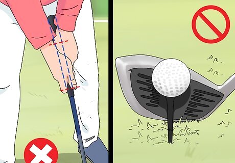 Stop choking down quite so much on your clubs. Many golfers are in the habit of gripping down low on their clubs in order to gain more leverage. While there is some benefit to this approach, it may actually be negatively affecting your swing. Minimize the damage by placing your hands closer to the middle of the grip, or even somewhere near the top. Above all, your grip location should be comfortable and well-balanced. If it simply feels better to you to choke down on your clubs, another option is to invest in a slightly longer set to make up for the distance you’re losing due to your hand positioning.