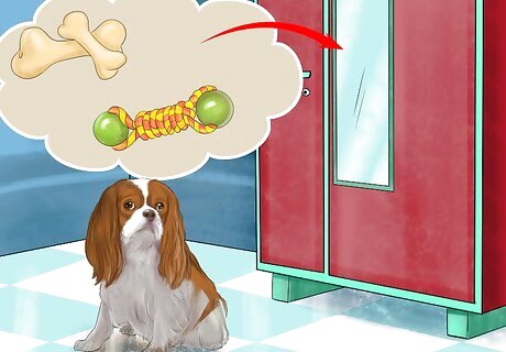 Train against possessive aggression. Possessive aggression is when a dog displays aggressive behavior towards people or animals that get close to something the dog wants. This most commonly happens with food and treats, but it can happen with other items like a dog bed or even a piece of furniture. Limit your dog's access to items it might get possessive of. You can do this by blocking off certain areas of your home or by hiding these objects out of reach. If your dog is possessive and aggressive over toys or treats, remove your dog's access to those items. Only give access when your dog is in its crate (if you use one) or a confinement room alone with you. Keep your dog on a leash during training. Work on offering food rewards as you take possession of the item(s) your dog gets protective of, speak in a calm but confident voice, and pet your dog while you take the desirable item(s). Restrict all access to highly-desirable items like rawhide bones and pig's ears, at least during your initial training. These items are more likely to provoke an aggressive response.